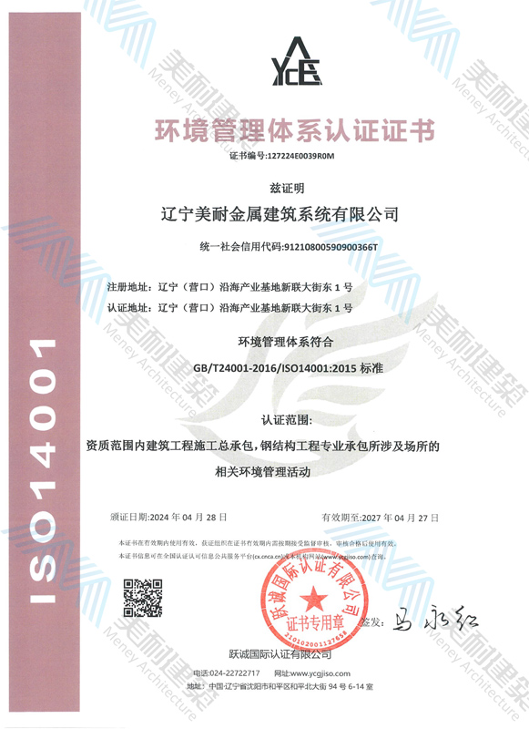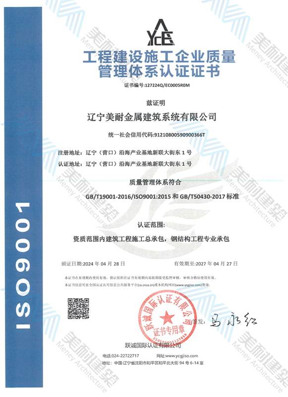 遼寧美耐金屬建筑系統(tǒng)有限公司位于遼寧(營口)沿海產(chǎn)業(yè)基地,專注于預制金屬建筑系統(tǒng)領域,是一家集工業(yè)建筑設計、制作、施工及相關的技術(shù)咨詢與服務為一體的綜合性服務企業(yè)。作為國家鋼結(jié)構(gòu)協(xié)會會員、中國建筑金屬結(jié)構(gòu)協(xié)會會員單位與國家高新技術(shù)企業(yè),美耐建筑集建筑工程施工總承包、鋼結(jié)構(gòu)工程專業(yè)承包等多種資質(zhì)于一身,并擁有22項鋼結(jié)構(gòu)建筑領域?qū)@?項軟件著作權(quán)。